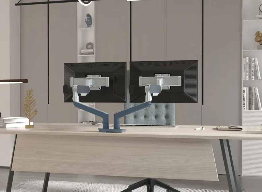 Van vaste tot volledig verstelbare armen en dubbele opstellingen: altijd ergonomisch, strak en slim geïntegreerd.