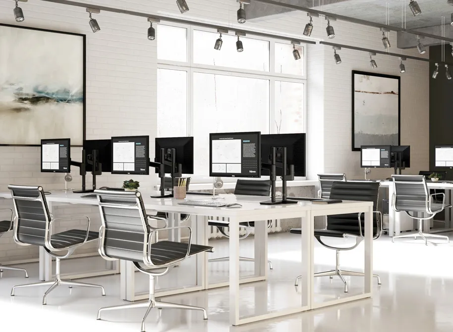 Onze adviseurs kijken verder dan het scherm. Ze brengen in kaart wie er werken, het soort werk dat wordt verricht, hoe vaak er van werkplek wordt gewisseld en welke schermen worden gebruikt. Op basis daarvan adviseren we de juiste oplossing: van enkele monitorarmen tot dubbele of dynamische varianten. Daarnaast zorgen we voor een perfecte montage. Natuurlijk geïntegreerd met kabelmanagement en elektrificatie.