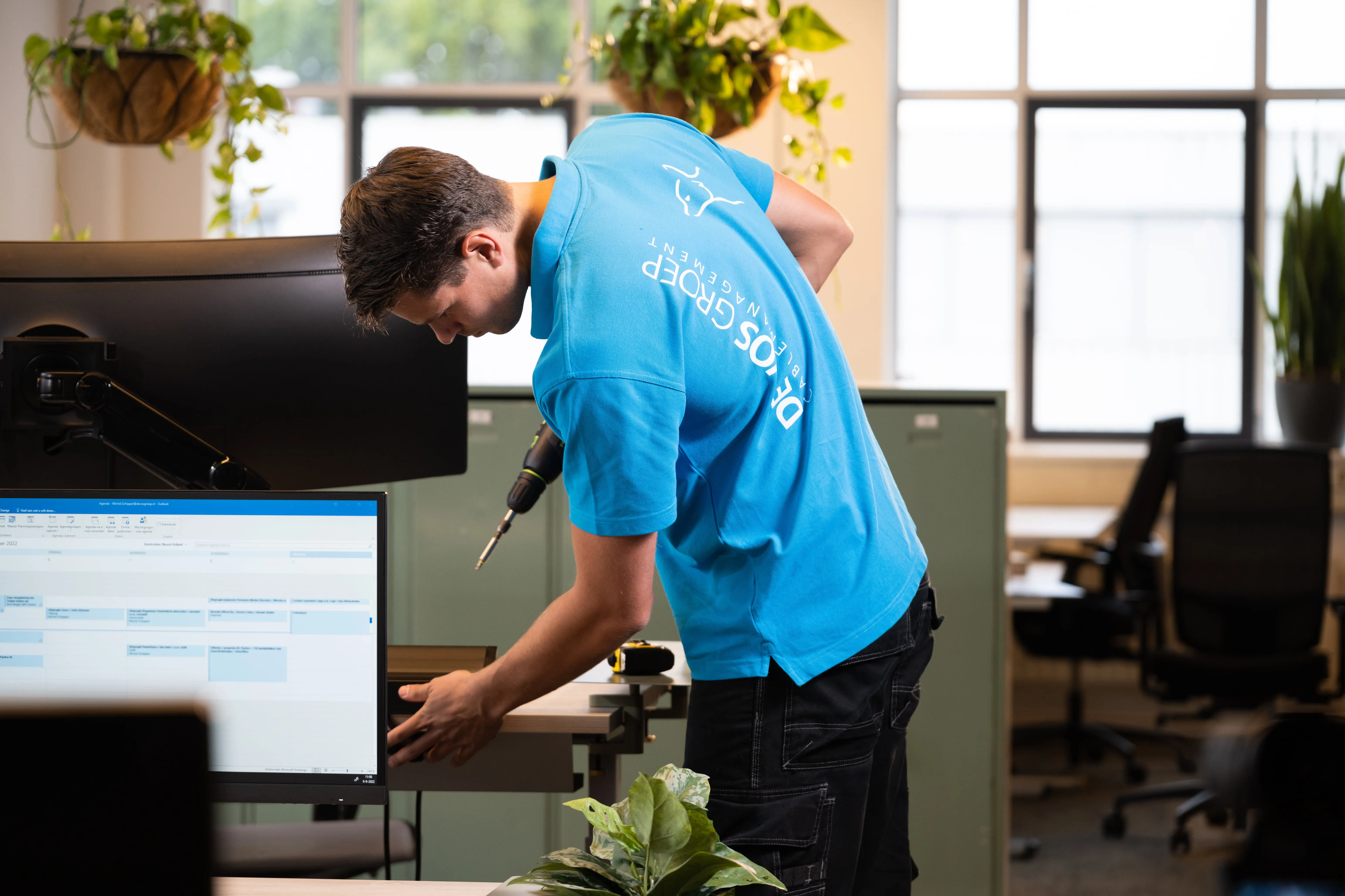 Vakmensen in kabelmanagement, elektrificatie en monitorarmen.